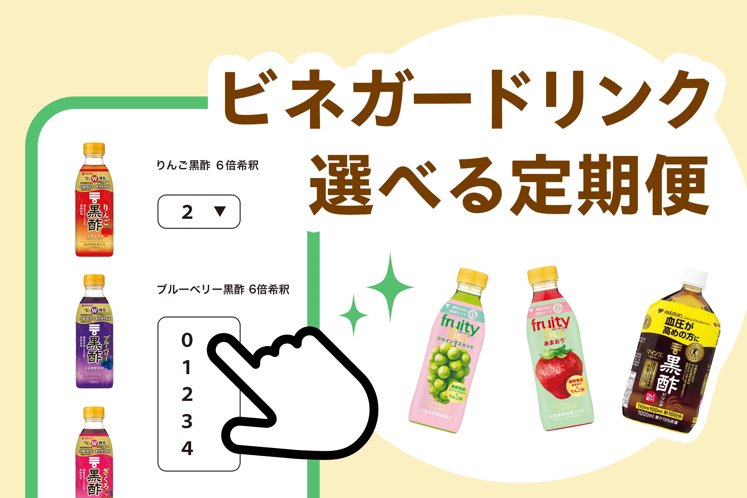ビネガードリンク選べる定期便でお酢生活を始めてみませんか?ご自身に合わせた商品で楽しく選びながらお酢生活を続けることができます。2回目のお届け以降もマイページでいつでも組み合わせ変更ができます。