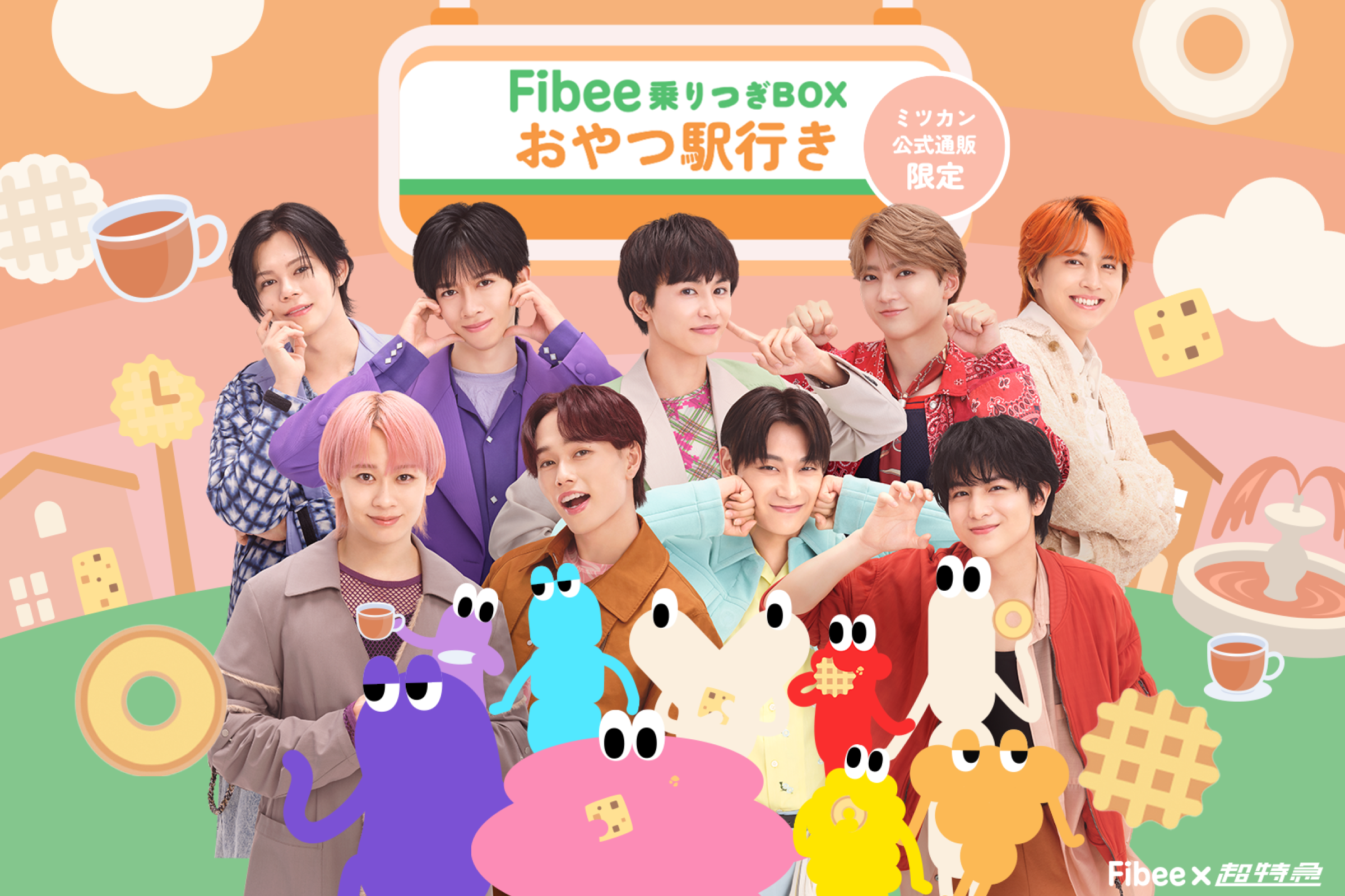 Fibee×超特急コラボBOX第2弾「Fibee乗りつぎBOX おやつ駅行き」を販売中!ワッフルやビスキュイが入ったおやつにぴったりなBOXです。オリジナル特典の「ファイビー腸特急AR」も必見です。