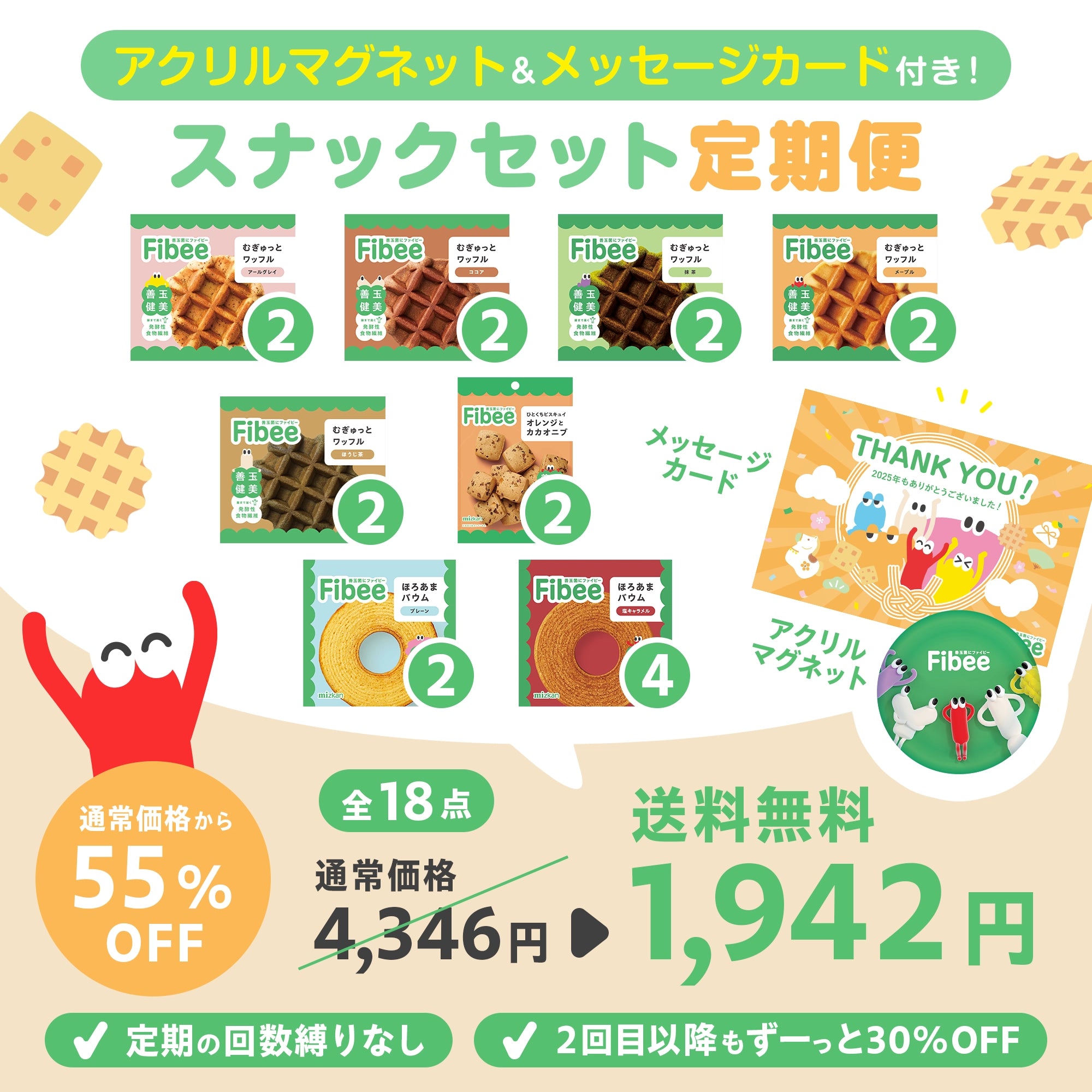 【8種18点】Fibeeアクリルマグネット&メッセージカード付き!スナックセット