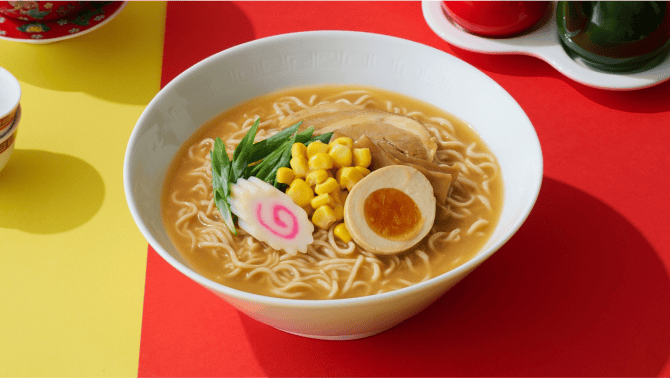 全粒粉とオーツ麦を配合した、食べ心地軽やかなこだわりの無かんすい麺が特長です。オリジナルブレンドのみそをベースに香味野菜を利かせたスープでお楽しみください。