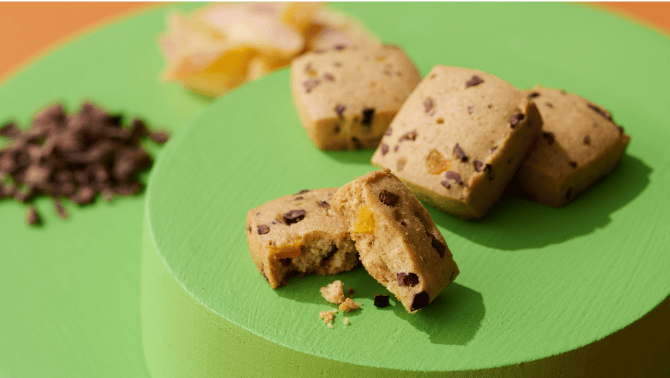 オレンジとカカオニブを練りこんだ、さくっと食感が特徴です。ほんのり広がるバターの香りと、かりっとほろ苦いカカオニブの風味をひと口サイズでお楽しみください。