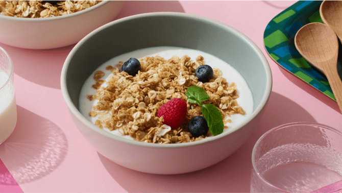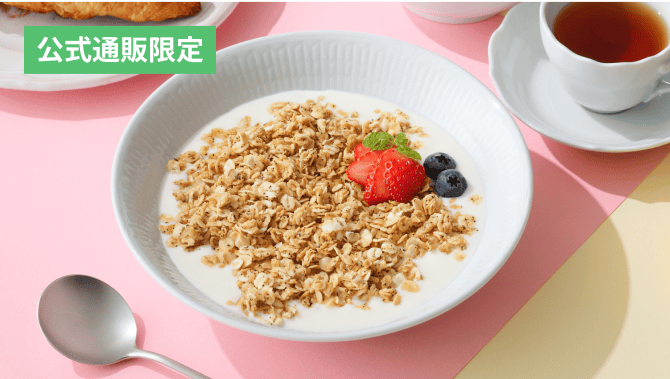 オーツ麦と大麦を丁寧に焼き上げた、ざくっと食感でやさしい甘さの「オートミールグラノーラ」です。口に入れた瞬間、アールグレイの華やかな香りに包まれます。牛乳を注ぐと、香り高いミルクティーのような味わいに。