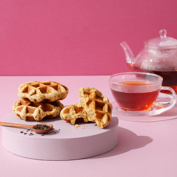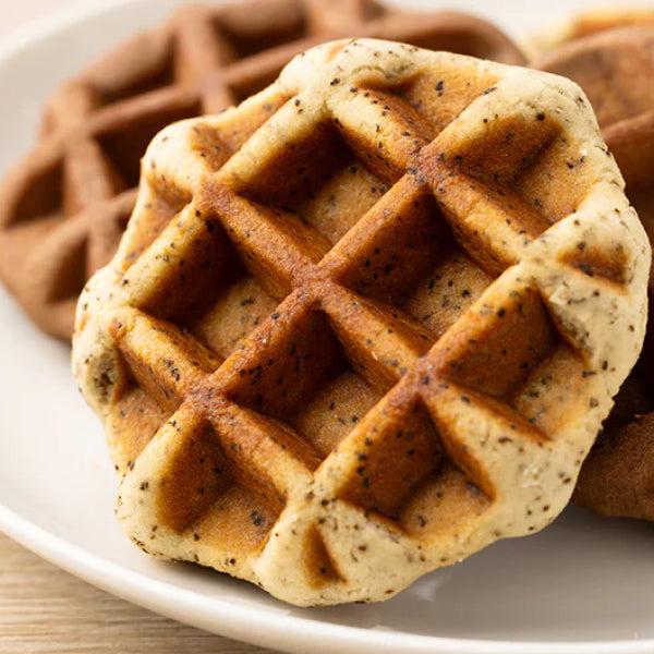 全粒粉やおからを使って焼き上げた、むぎゅっと食感のワッフルです。アールグレイが華やかに香り、やさしい甘さに仕上げました。