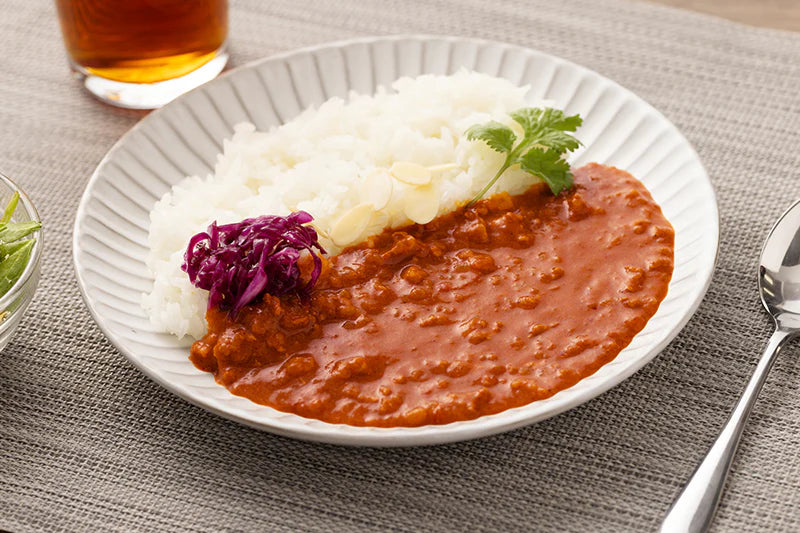 炒め玉ねぎに完熟トマトを加えて煮込んだキーマカレーです。厳選した11種のオリジナルスパイスが味の引き立て役。さっぱりとしながらも旨味と満足感の感じられる味わいをお楽しみください。レンジでそのまま温めるだけで、手軽にお楽しみいただけます。