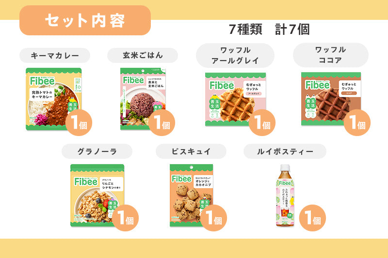 主食から間食まで。Fibeeがたっぷり試せるコンプリートセット。善玉生活に前向きな方におすすめです。