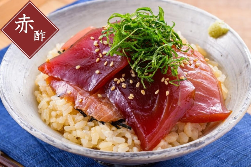 「特級すし酢 赤酢 醸美仕立て」は食べ続けたくなる、”奥深い旨味”が特徴です。特にまぐろなどの味の濃いネタがよく合います。