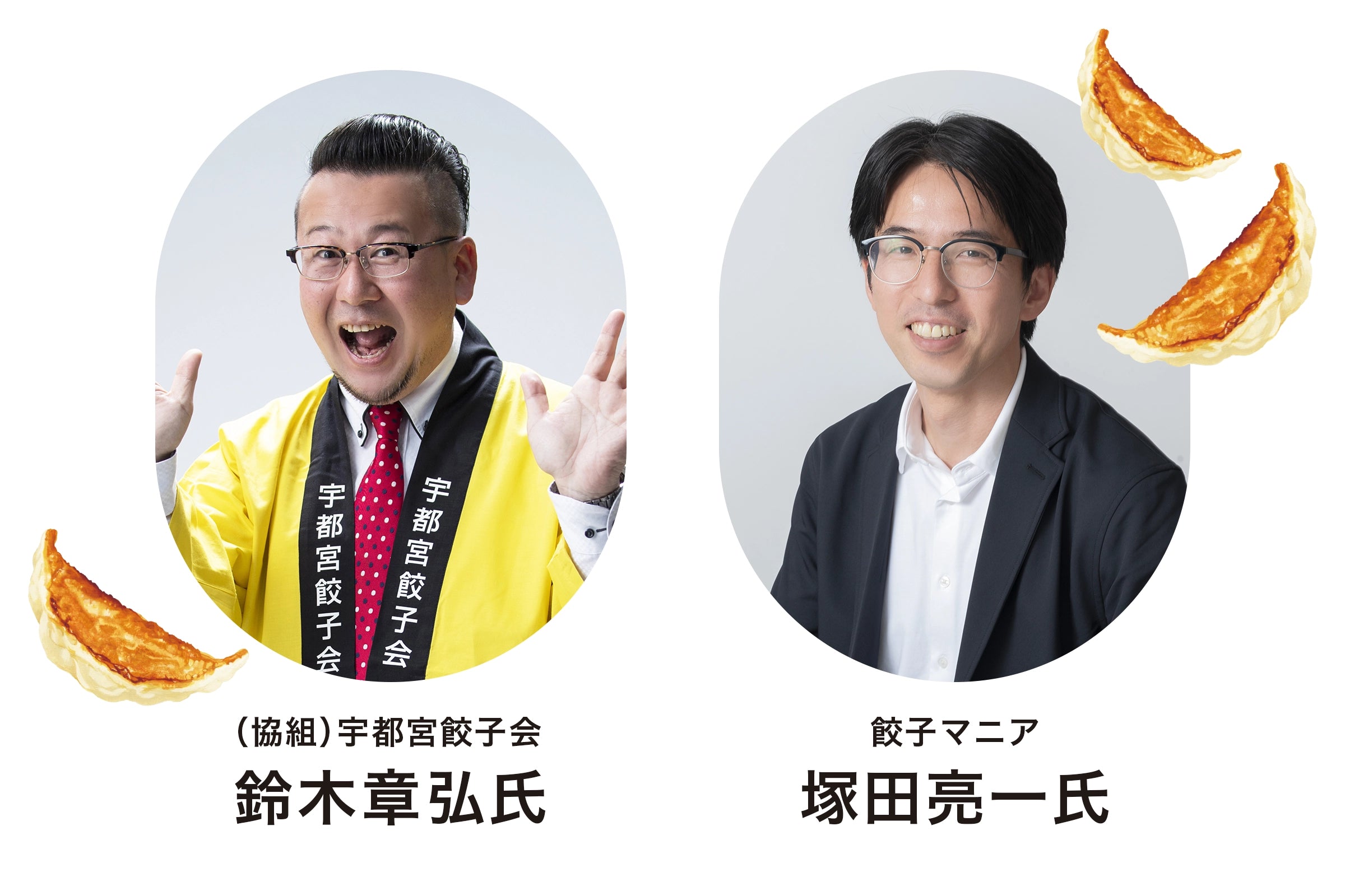 日本で唯一 餃子の組合である協同組合宇都宮餃子会の事務局長、鈴木章弘氏と、餃子の食べ歩きは3000軒超、メディアでも数々の餃子を紹介している熱烈な餃子マニア、塚田亮一氏。