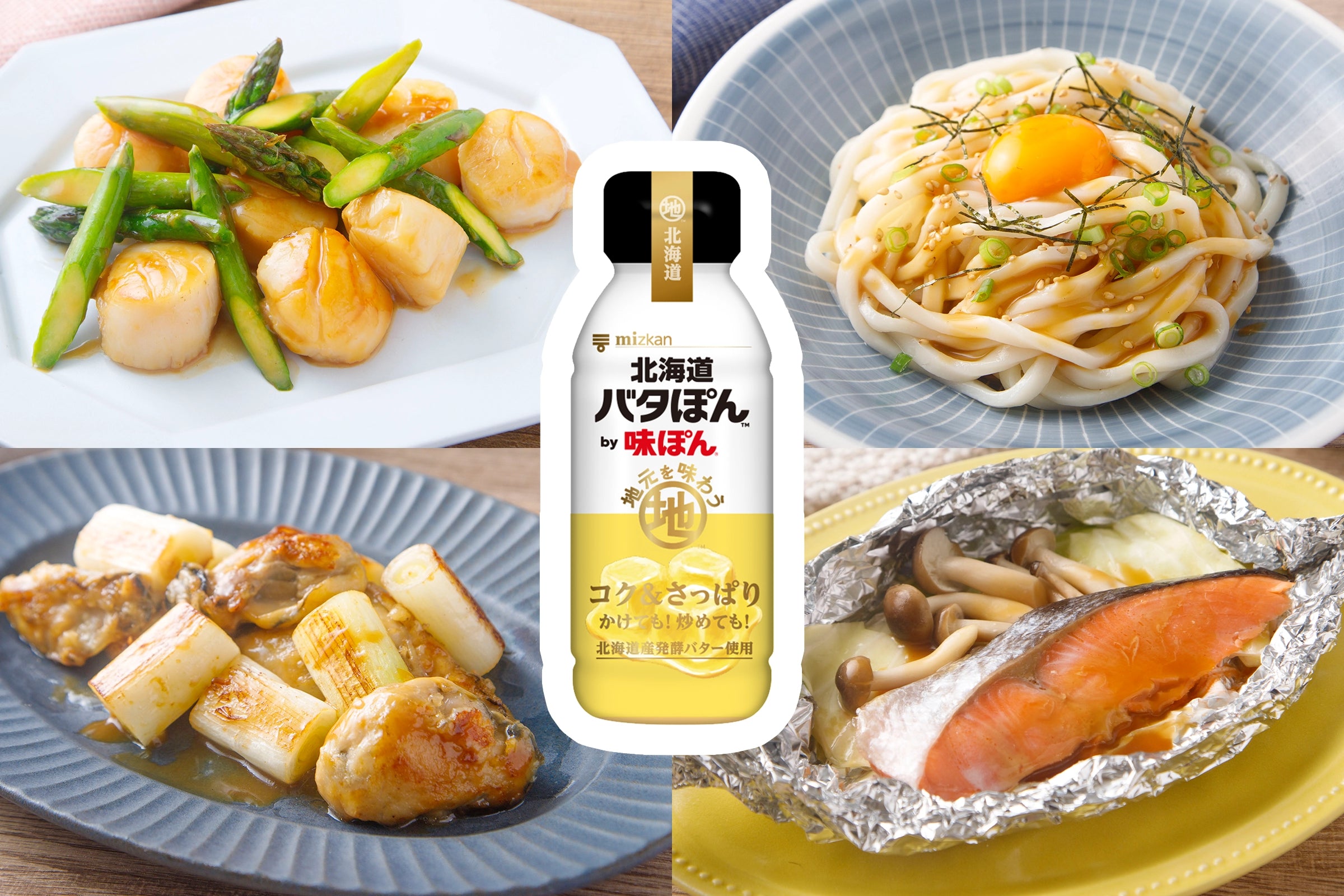 味ぽんと北海道産発酵バターを合わせた、バタぽんです。味ぽんをベースに、コクがあり風味高い発酵バターを合わせ、コクがありながらさっぱりな味わいに仕上げました。